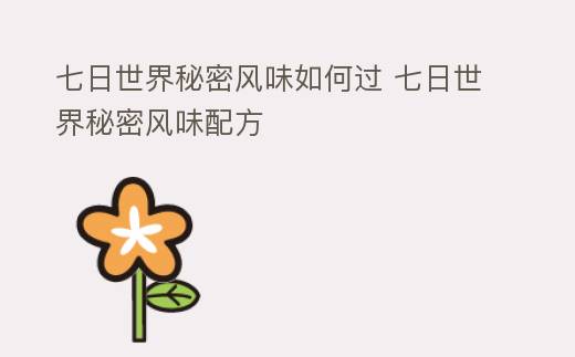 七日世界秘密风味如何过 七日世界秘密风味配方