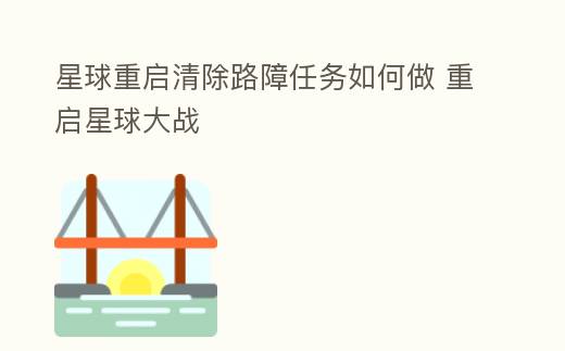 摘要:星球重启清除路障任务怎么做,星球重启清除路障任务如何做 重启星球大战