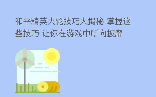 掌握火轮技巧,可以帮助玩家在《和平精英》中更好地应对各种战场情况。相信玩家们已经对火轮有了更深入的了解。以下是一些与“和平精英火轮技巧”相关的百度搜索关键词,供玩家参考: