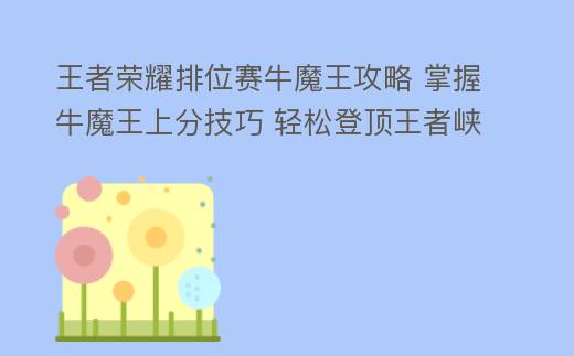 王者荣耀排位赛牛魔王是一位强大的战士英雄,掌握其玩法技巧和应对策略,将有助于玩家在排位赛中取得优异成绩。以下是一些与“王者荣耀排位赛牛魔王”相关的百度搜索关键词: