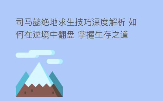 摘要:前言:在《王者荣耀》这款MOBA游戏中,司马懿以其独特的技能和战术玩法,成为了许多玩家心中的绝地求生英雄。如何在逆境中发挥司马懿的最大潜力,成为许多玩家关注的焦点。本文将深入解析司马懿的绝地求生技巧,助你在战场上所向披靡。一、了解司马懿的技能特点司马懿的技能分为三个阶段,每个阶段都有其独特的技能组合。了解这些技能特点,,司马懿绝地求生技巧深度解析 如何在逆境中翻盘 掌握生存之道