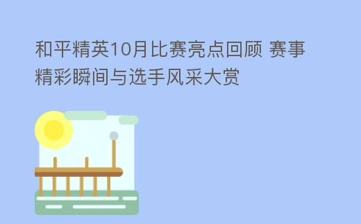 和平精英10月比赛亮点回顾 赛事精彩瞬间与选手风采大赏
