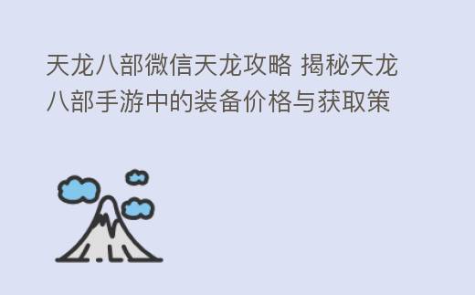 天龙八部微信天龙攻略 揭秘天龙八部手游中的装备价格与获取策略
