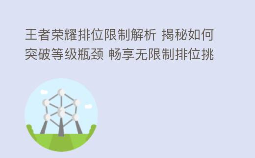 王者荣耀排位限制是游戏中普遍存在的问题,但通过提升自身实力、调整心态、寻求团队协作以及利用游戏资源等方法,玩家们可以突破瓶颈,提升竞技水平。在游戏中,保持良好的心态,享受游戏过程,才是最重要的。