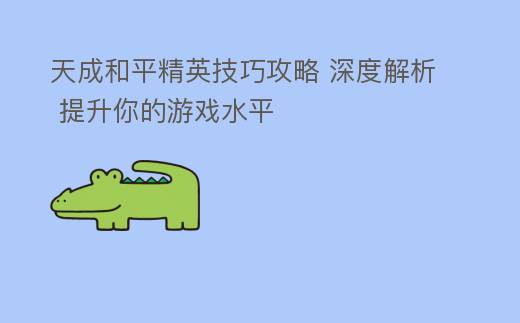 摘要:天成和平精英技巧攻略:轻松上分必备指南在《天成和平精英》这款热门的射击游戏中,技巧的运用对于提升游戏体验和竞技水平至关重要。本文将为你提供一系列实用的技巧攻略,帮助你轻松上分,成为游戏中的佼佼者。一、精准射击技巧在《天成和平精英》中,精准的射击技巧是取胜的关键。以下是一些提升射击精准度的方法:1.调整灵敏度:根据个人习惯调整射击灵敏度,确保在移动和射击时能够准确命中目标。,天成和平精英技巧攻略 深度解析 提升你的游戏水平