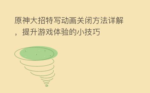 摘要:在热门游戏《原神》中,许多玩家对于华丽的大招特写动画爱不释手,它们为战斗增添了更多的视觉冲击和乐趣,也有一些玩家可能希望关闭这些动画,以节省设备性能,提高游戏流畅度,或是减少视觉干扰,本文将详细介绍如何关闭原神大招特写动画,帮助玩家根据个人需求调整游戏设置。关闭方法要关闭原神大招特写动画,你需要进入,原神大招特写动画关闭方法详解,提升游戏体验的小技巧
