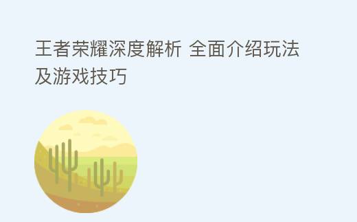 王者荣耀深度解析 全面介绍玩法及游戏技巧