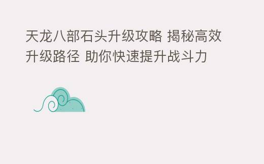 摘要:天龙八部石头升级攻略:轻松提升战力,畅游江湖在《天龙八部》这款经典的武侠手游中,石头升级是玩家们提升战力的关键环节。石头作为游戏中的稀有资源,其升级速度直接影响到玩家的整体实力。本文将为您详细解析天龙八部石头升级,天龙八部石头升级攻略 揭秘高效升级路径 助你快速提升战斗力