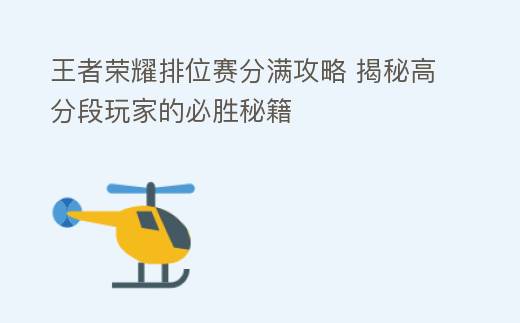 王者荣耀排位赛分满攻略 揭秘高分段玩家的必胜秘籍