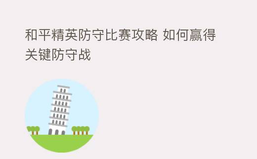 摘要:和平精英防守比赛:策略与技巧解析在《和平精英》这款广受欢迎的射击游戏中,防守比赛无疑是一项极具挑战性的竞技项目。它要求玩家不仅要具备出色的射击技巧,还要有出色的战术布局和团队协作能力。本文将深入解析和平精英防守比赛的相关玩法、策略以及解决办法,帮助玩家在比赛中脱颖而出。一,和平精英防守比赛攻略 如何赢得关键防守战
