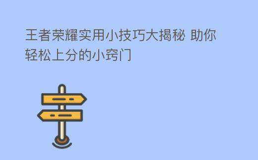 在《王者荣耀》这款MOBA游戏中,掌握一些实用的小技巧对于提升游戏体验和竞技水平至关重要。无论是新手玩家还是老玩家,都能从中受益。以下是一些《王者荣耀》的实用小技巧,帮助你轻松上分。