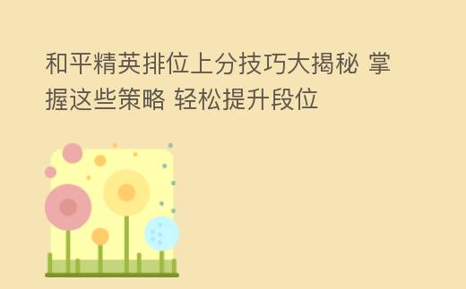 和平精英排位上分技巧大揭秘 掌握这些策略 轻松提升段位
