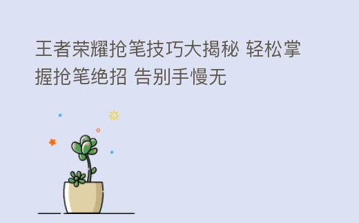 王者荣耀抢笔技巧大揭秘 轻松掌握抢笔绝招 告别手慢无