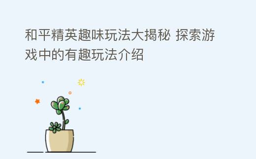前言:和平精英,作为一款备受欢迎的竞技游戏,凭借其紧张刺激的战斗体验和丰富的游戏玩法,吸引了无数玩家。我们将带你探索和平精英中那些有趣且独特的玩法,让你在游戏中找到更多的乐趣。