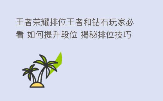 王者荣耀排位王者和钻石玩家必看 如何提升段位 揭秘排位技巧与策略