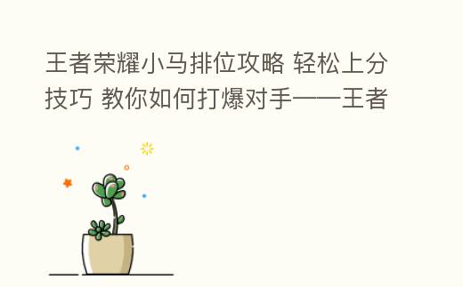 王者荣耀小马排位怎么打:技巧解析与实战攻略