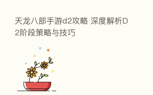 摘要:天龙八部手游D2攻略:轻松通关,畅游江湖在《天龙八部手游》中,D2关卡作为游戏的一大挑战,让许多玩家望而却步。本文将为你详细解析D2关卡的攻略,助你轻松通关,畅游江湖。一、了解D2关卡特点D2关卡相较于其他关卡,难度有所提升。敌人数量增多,且攻击方式更加复杂。关卡中会出现一些特殊机关,需要玩家灵活应对。关卡时间限制较短,要求玩,天龙八部手游d2攻略 深度解析D2阶段策略与技巧