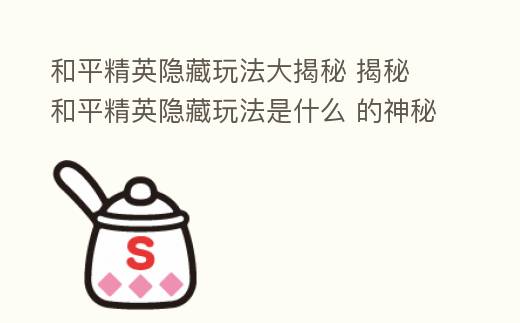和平精英隐藏玩法大揭秘 揭秘 和平精英隐藏玩法是什么 的神秘面纱