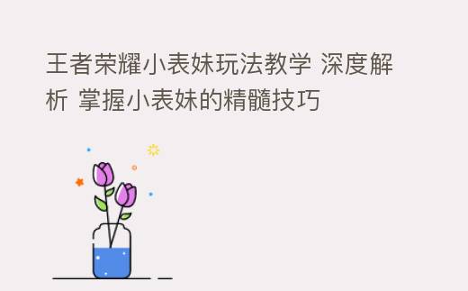 摘要:前言:在王者荣耀这款MOBA游戏中,小表妹作为一个新手英雄,因其独特的技能和可爱的形象深受玩家喜爱。如何才能让小表妹在战场上大放异彩,成为团队中的得力助手呢?本文将为你详细解析王者荣耀小表妹的玩法,助你轻松上分。一、小表妹,王者荣耀小表妹玩法教学 深度解析 掌握小表妹的精髓技巧