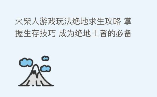 前言:火柴人游戏以其独特的画风和简单的操作深受玩家喜爱,而“绝地求生”作为一款以生存为核心理念的游戏模式,在火柴人游戏中也得到了巧妙融合。本文将详细介绍火柴人游戏玩法绝地求生,帮助玩家掌握游戏技巧,享受游戏乐趣。