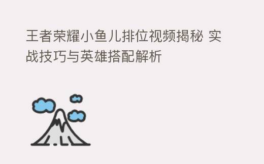 王者荣耀小鱼儿排位视频揭秘 实战技巧与英雄搭配解析