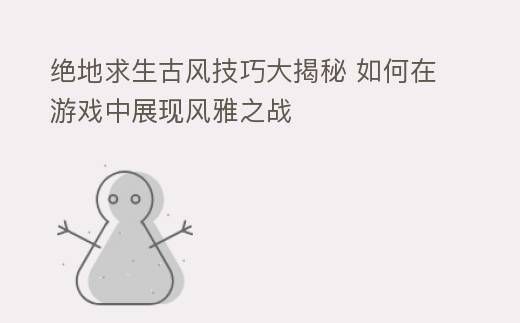 绝地求生古风技巧大揭秘 如何在游戏中展现风雅之战