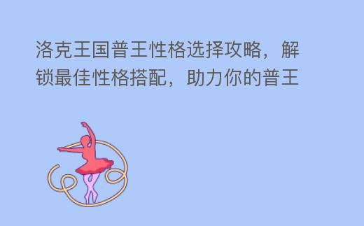 洛克王国普王作为洛克王国系列的核心角色之一,拥有独特的性格特点和技能组合,在游戏中选择合适的性格对于普王的成长和发展至关重要,本文将围绕普王性格选择的重要性、不同性格的特点以及如何利用普王性格优势进行攻略,帮助玩家更好地培养普王角色,使其在洛克王国中称霸战场。
