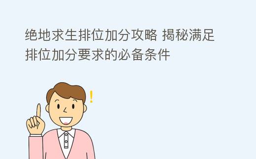 在《绝地求生》这款广受欢迎的竞技游戏中,排位赛是许多玩家追求的目标。要想在排位赛中脱颖而出,了解并掌握排位加分要求至关重要。本文将深入解析《绝地求生》排位加分要求,帮助玩家在游戏中取得更好的成绩。
