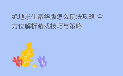 绝地求生豪华版怎么玩法攻略 全方位解析游戏技巧与策略