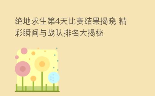 摘要:绝地求生第4天比赛结果解析:精彩对决与战术解析在紧张刺激的绝地求生比赛中,第4天的比赛结果无疑为观众们带来了更多的惊喜和期待。以下是本次比赛结果的详细解析,包括精彩对决、战术运用以及选手们的表现。一、精彩对决回顾在第四,绝地求生第4天比赛结果揭晓 精彩瞬间与战队排名大揭秘