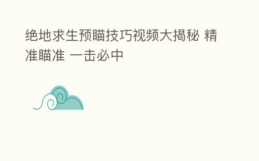 摘要:绝地求生预瞄技巧视频:精准瞄准,一击必杀在《绝地求生》这款全球风靡的射击游戏中,预瞄技巧是玩家们提升生存率、提高击杀率的关键。预瞄,顾名思义,就是在射击前提前瞄准目标,以便在敌人开火时迅速做出反应。本文将为您带来一系列《绝地求生》预瞄技巧视频,帮助您在游戏中更加精准地瞄准,一击必杀!一、预瞄的基本概念预瞄是指玩家在射击前,,绝地求生预瞄技巧视频大揭秘 精准瞄准 一击必中