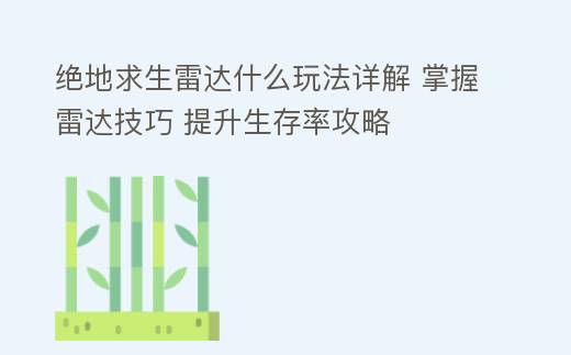 摘要:绝地求生雷达玩法攻略:精准定位,掌控战场在《绝地求生》这款风靡全球的射击游戏中,雷达这一道具对于玩家来说至关重要。它不仅能帮助玩家发现敌人,还能在关键时刻扭转战局。那么,如何正确使用雷达,发挥其在游戏中的作用呢?本文将为您详,绝地求生雷达什么玩法详解 掌握雷达技巧 提升生存率攻略