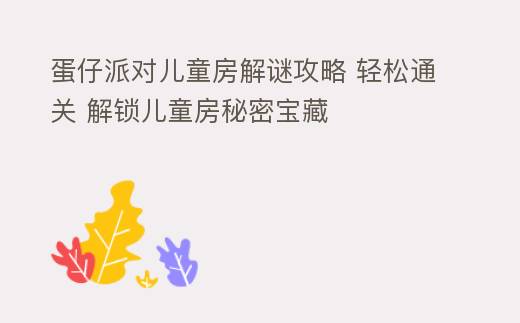 摘要:蛋仔派对儿童房解谜攻略:探索童趣世界的密室逃脱之旅在《蛋仔派对》这款充满童趣的冒险游戏中,儿童房解谜环节无疑是一道亮丽的风景线。这里不仅考验玩家的智慧,更是一次充满乐趣的亲子互动体验。本文将为你揭秘儿童房解谜的奥秘,助你在游戏中畅游无阻。一、儿童房布局解,蛋仔派对儿童房解谜攻略 轻松通关 解锁儿童房秘密宝藏