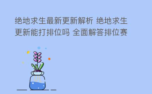 绝地求生最新更新解析 绝地求生更新能打排位吗 全面解答排位赛新变化