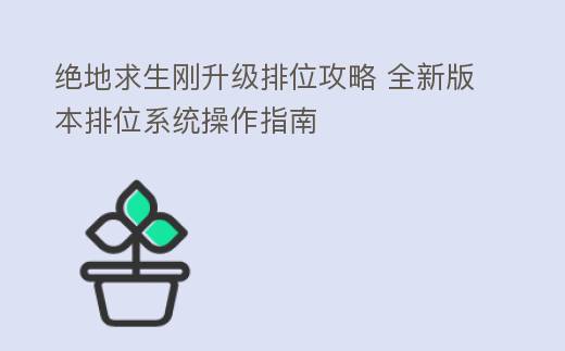 摘要:绝地求生刚升级如何快速排位随着《绝地求生》的不断更新,许多玩家在游戏升级后都面临着如何快速排位的问题。刚升级的玩家往往技术水平和装备配置都有所提升,但如何在排位赛中脱颖而出,成为许多玩家关心的话题。本文将为您详细解析刚升级如何在《绝地求生》中快速排位。一、熟悉新版本改动在刚升级后,首先需要了解新版本中的改动。这包括游戏地图、武器装备、游戏机,绝地求生刚升级排位攻略 全新版本排位系统操作指南