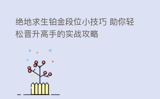 摘要:前言:在《绝地求生》这款竞技游戏中,铂金段位代表着玩家已经具备了一定的游戏技巧和战术意识。想要在这个段位中脱颖而出,还需要掌握一些独到的技巧。本文将为你揭秘提升战力的关键策略,助你轻松迈向铂金段位。一、精准定位,把握时机在,绝地求生铂金段位小技巧 助你轻松晋升高手的实战攻略