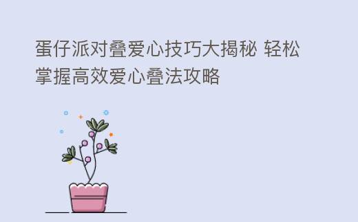 掌握《蛋仔派对》叠爱心技巧,不仅能让玩家在游戏中体验到浪漫的氛围,还能提高游戏乐趣。通过了解规则、选择合适的道具、掌握堆叠技巧和团队合作,相信你一定能在游戏中成为叠爱心的高手!