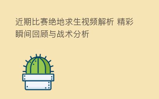 近期比赛中的绝地求生视频展现了这款游戏的精彩与激情。通过回顾比赛亮点、解析战术和玩法解决办法,玩家们可以从中学习到许多宝贵的经验。在今后的游戏中,相信大家能够运用所学,取得更好的成绩。
