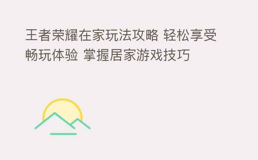 王者荣耀在家玩法攻略主要包括熟悉英雄技能、掌握地图视野、合理分配经济、团队协作和调整心态等方面。通过掌握这些攻略,可以在家轻松畅玩王者荣耀,提升游戏技巧,享受游戏乐趣。