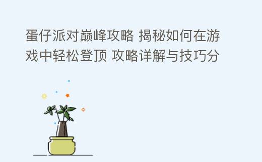 在《蛋仔派对》这款充满趣味与挑战的休闲竞技游戏中,想要成为巅峰玩家,掌握一些实用的攻略是必不可少的。本文将为你揭秘《蛋仔派对》巅峰攻略,助你轻松登顶,成为派对之王。