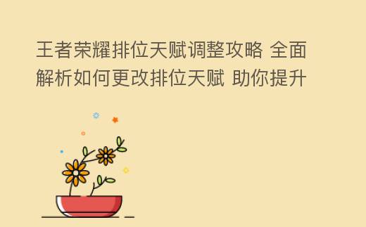 文章标题:王者荣耀排位天赋调整攻略:重塑战局,提升胜率