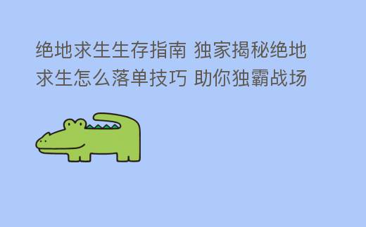 在《绝地求生》中,掌握落单技巧至关重要。通过选择合适的降落地点、合理规划装备升级、掌握战术技巧和合理分配时间,你也能在游戏中独闯江湖,成为最后的胜者。