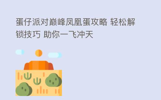 摘要:蛋仔派对巅峰凤凰蛋攻略:轻松征服巅峰之巅在《蛋仔派对》这款充满趣味与挑战的手机游戏中,巅峰凤凰蛋无疑是众多玩家梦寐以求的宝物。它不仅代表着游戏中的至高荣誉,更是实力与技巧的象征。本文将为你详细解析巅峰凤凰蛋的获取攻略,助你轻松征服巅峰之巅。一、了解巅峰凤凰蛋的获取条件,蛋仔派对巅峰凤凰蛋攻略 轻松解锁技巧 助你一飞冲天
