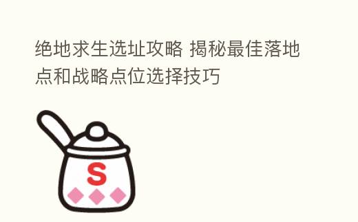 在《绝地求生》中,选址策略对于游戏的胜负至关重要。了解地图特点、资源分布、天气变化、地形优势、避开热门区域以及灵活调整策略,都是提高生存几率的关键。希望本文能帮助你更好地掌握选址技巧,在游戏中取得优异成绩。