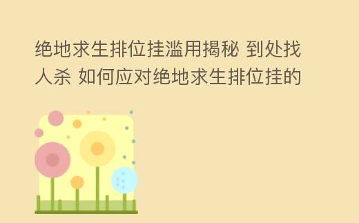 绝地求生排位挂滥用揭秘 到处找人杀 如何应对绝地求生排位挂的猖獗现象