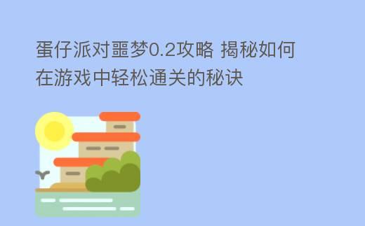 摘要:蛋仔派对噩梦0.2攻略:轻松应对挑战,掌握游戏技巧随着《蛋仔派对》噩梦模式的更新,玩家们迎来了全新的挑战——噩梦0.2版本。这个版本不仅增加了新的关卡和障碍,还带来了更加复杂的游戏玩法。为了帮助玩家们更好地应对这些挑战,本文将为大家详细解析噩梦0.2版本的攻略,助你轻松通关。一、熟悉游戏环境在开始,蛋仔派对噩梦0.2攻略 揭秘如何在游戏中轻松通关的秘诀