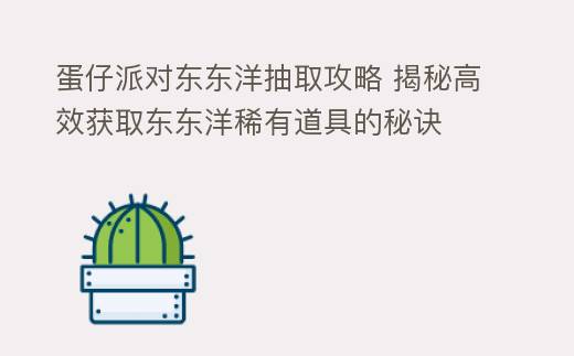 前言:在《蛋仔派对》这款热门手机游戏中,东东洋角色因其独特的造型和强大的能力而备受玩家喜爱。如何高效地抽取到心仪的东东洋角色成为了许多玩家的难题。本文将为你提供一系列实用的抽取攻略,助你轻松解锁心仪角色。