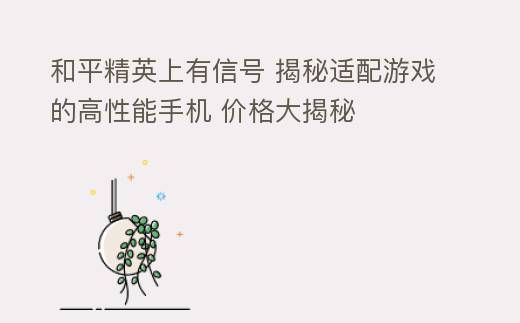 和平精英上有信号 揭秘适配游戏的高性能手机 价格大揭秘