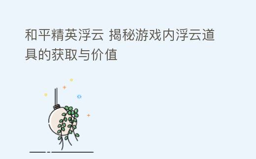 前言:在《和平精英》这款热门的射击游戏中,有一个神秘的词汇——“浮云”。它似乎代表着游戏中的一种超然力量,让许多玩家为之着迷。那么,何是“浮云”?它又该该怎么办办在游戏中发挥影响呢?本文将带你揭开“和平精英浮云”的神秘面纱。