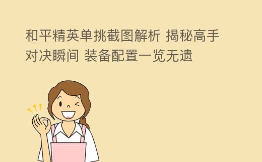 摘要:和平精英单挑截图:技巧解析与实战分享在《和平精英》这款广受欢迎的射击游戏中,单挑环节无疑是最具挑战性和观赏性的部分。一张精妙的单挑截图,不仅能够记录下玩家们的英勇瞬间,还能成为朋友圈中的亮点。本文将深入解析《和平精英》单挑截图的技巧,帮助玩家,和平精英单挑截图解析 揭秘高手对决瞬间 装备配置一览无遗
